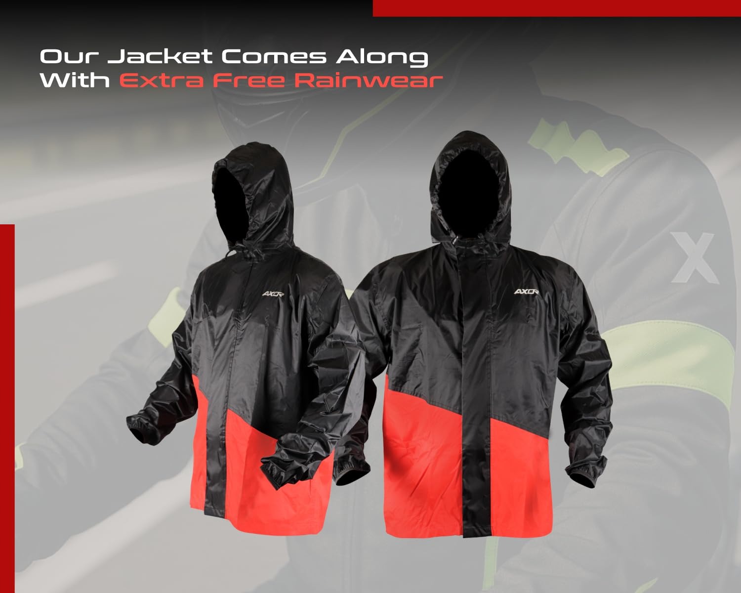 - Our jacket includes rainwear for added convenience and protection.
